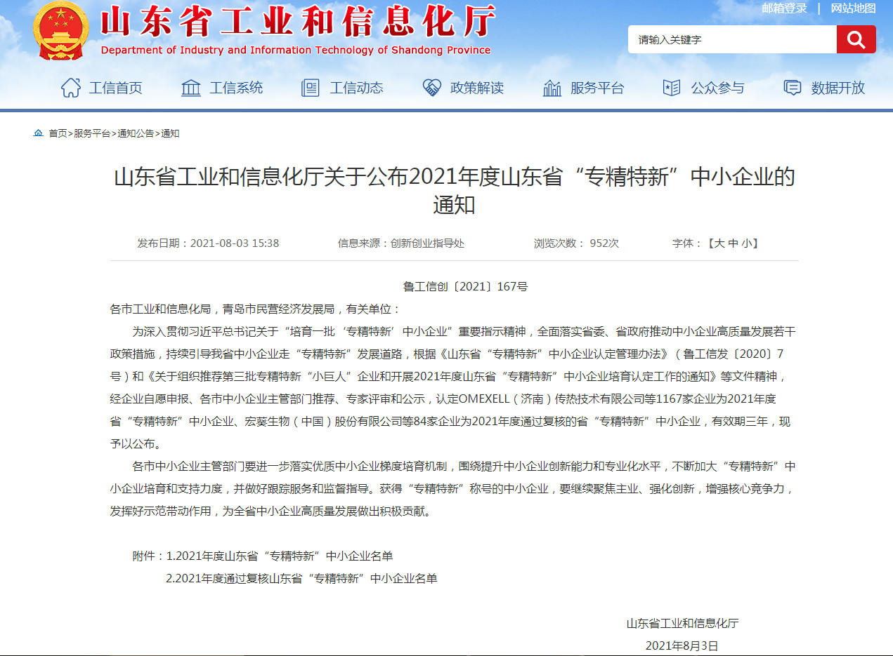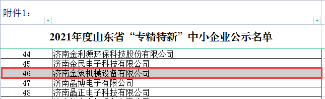 根據(jù)《山東省“專(zhuān)精特新”中小企業(yè)認(rèn)定管理辦法》(魯工信發(fā)〔2020〕7號(hào))、《關(guān)于組織推薦第三批專(zhuān)精特新“小巨人”企業(yè)和開(kāi)展2021年度山東省“專(zhuān)精特新” 中小企業(yè)培育認(rèn)定工作的通知》等文件精神,省工業(yè)和信息化廳組織開(kāi)展了2021年度省“專(zhuān)精特新”中小企業(yè)培育認(rèn)定工作。經(jīng)嚴(yán)格審查,濟(jì)南金象機(jī)械設(shè)備有限公司順利通過(guò)2021年度省市兩級(jí)“專(zhuān)精特新”企業(yè)評(píng)審,成為2021年度山東省和濟(jì)南市“專(zhuān)精特新”企業(yè)。